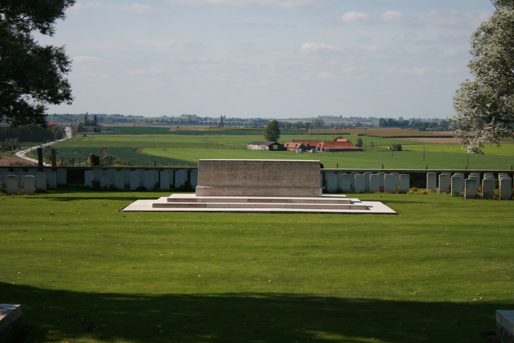 De afbeelding 'Messines Ridge British Cemetery and Memorial to the missing' gemaakt door Decoodt, Hannelore wordt ter beschikking gesteld door Agentschap Onroerend Erfgoed (AOE) onder de volgende voorwaarden: Modellicentie voor gratis hergebruik, Naamsvermelding 4.0 Internationaal.