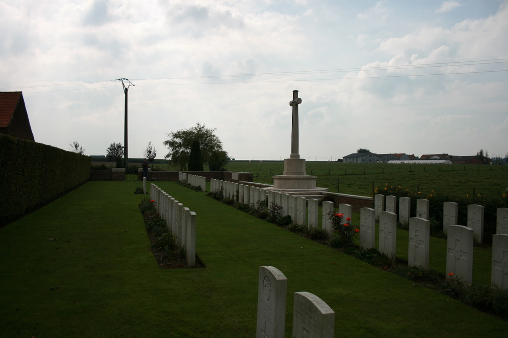 De afbeelding 'Ruisseau Farm Cemetery' gemaakt door Decoodt, Hannelore wordt ter beschikking gesteld door Agentschap Onroerend Erfgoed (AOE) onder de volgende voorwaarden: Modellicentie voor gratis hergebruik, Naamsvermelding 4.0 Internationaal.