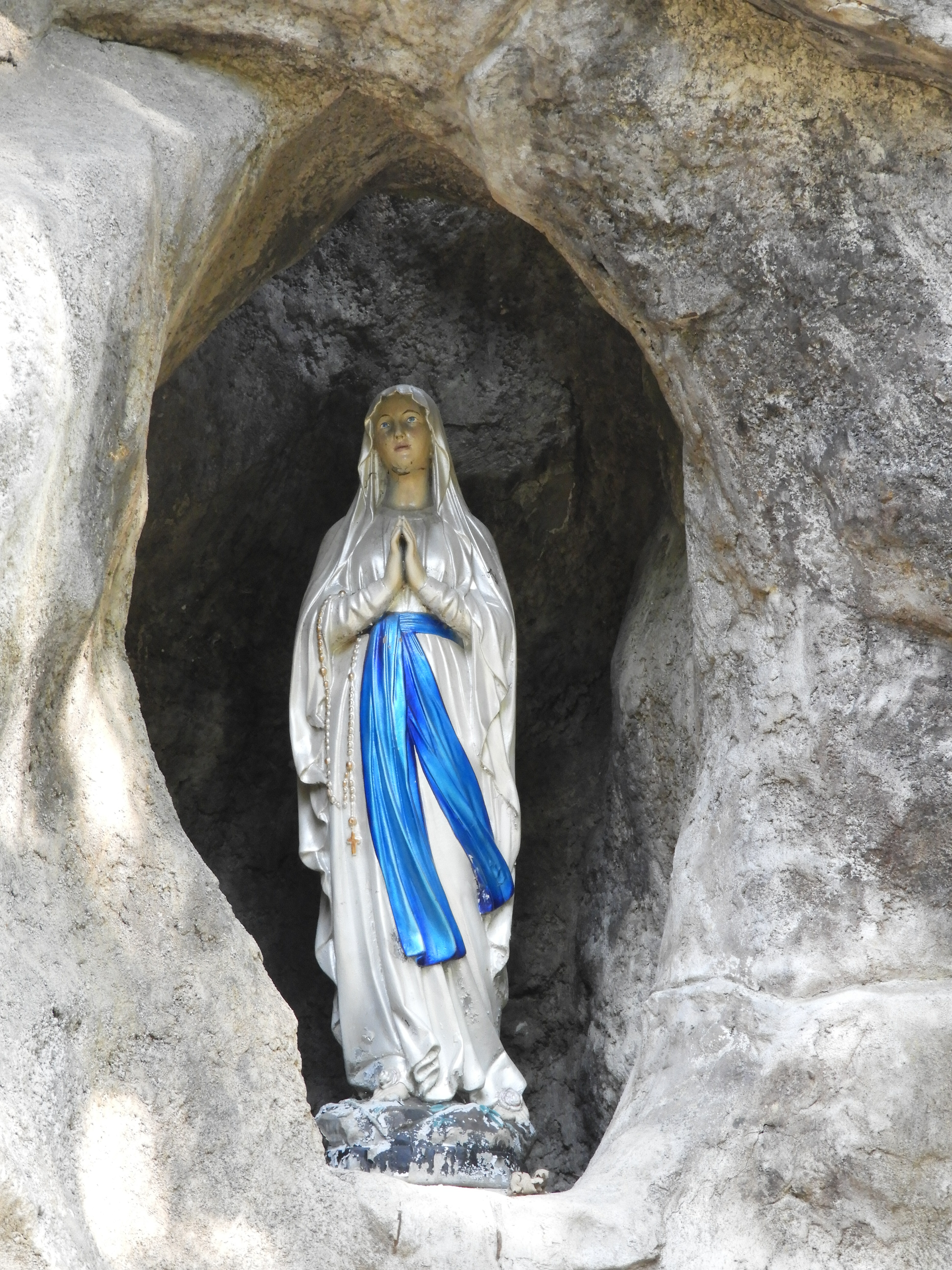 Mariabeeld in de Lourdesgrot van het Mariapark bij de abdij van Averbode.
