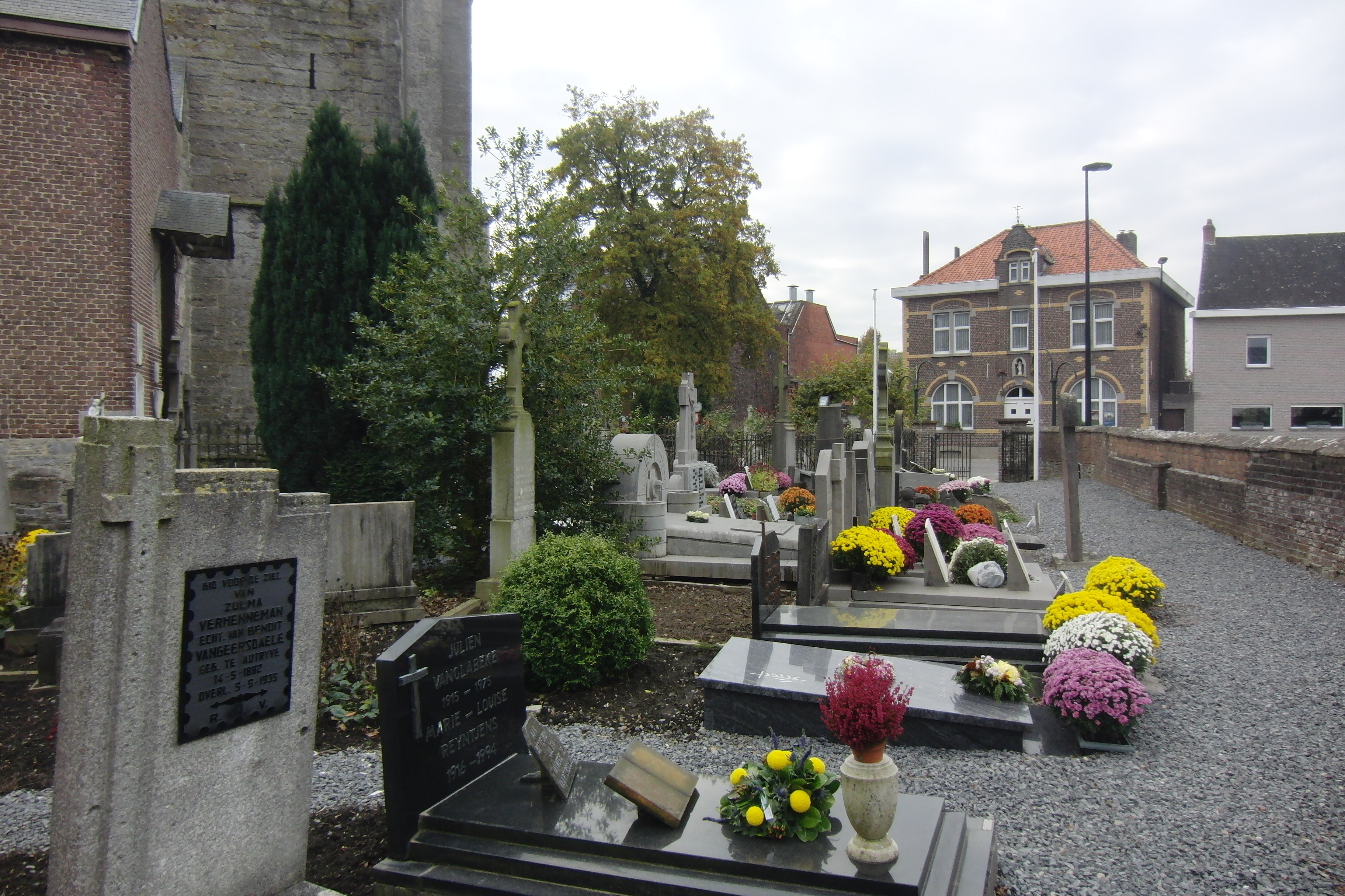 De afbeelding 'Parochiekerk Sint-Pieters met kerkhof' gemaakt door Vanneste, Pol wordt ter beschikking gesteld door Agentschap Onroerend Erfgoed (AOE) onder de volgende voorwaarden: Modellicentie voor gratis hergebruik, Naamsvermelding 4.0 Internationaal.