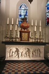 De afbeelding 'Avelgem Outrijve Sint-Pieterskerk - hoofdaltaar' gemaakt door Vanneste, Pol wordt ter beschikking gesteld door Agentschap Onroerend Erfgoed (AOE) onder de volgende voorwaarden: Modellicentie voor gratis hergebruik, Naamsvermelding 4.0 Internationaal.