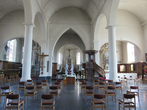 De afbeelding 'Kortrijk Bellegem interieur van de Sint-Amanduskerk ' gemaakt door Vanneste, Pol wordt ter beschikking gesteld door Agentschap Onroerend Erfgoed (AOE) onder de volgende voorwaarden: Modellicentie voor gratis hergebruik, Naamsvermelding 4.0 Internationaal.