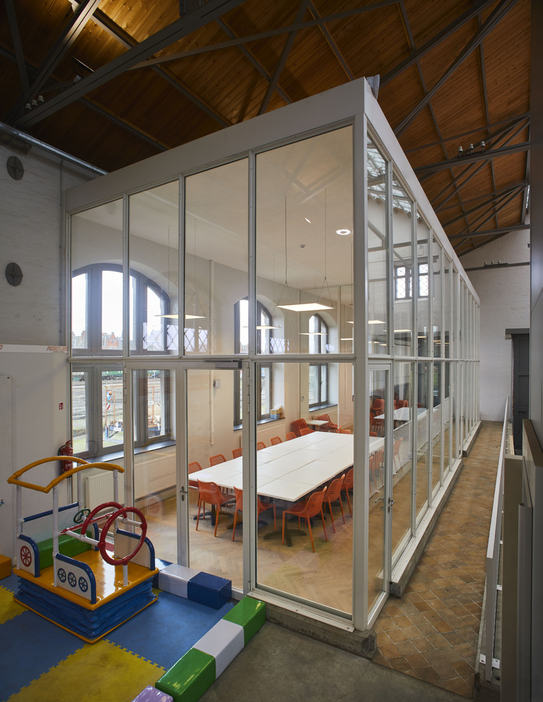 De afbeelding 'NMBS-goederenloods' gemaakt door Vandevorst, Kris wordt ter beschikking gesteld door Agentschap Onroerend Erfgoed (AOE) onder de volgende voorwaarden: Modellicentie voor gratis hergebruik, Naamsvermelding 4.0 Internationaal.