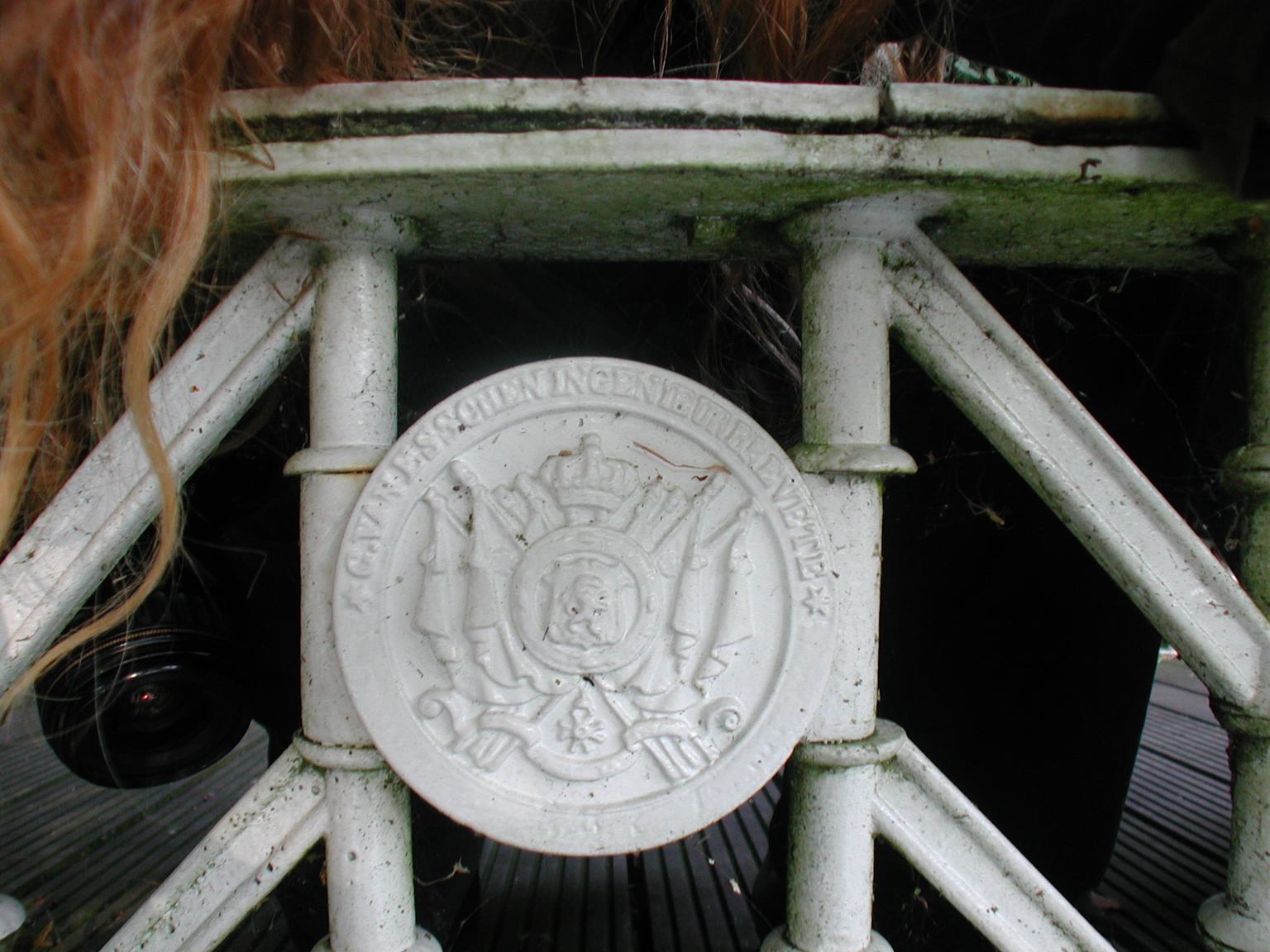 De afbeelding 'Jabbeke Flamincka Park zonder nummer ijzeren brug wapenschild' gemaakt door Hooft, Elise wordt ter beschikking gesteld door Agentschap Onroerend Erfgoed (AOE) onder de volgende voorwaarden: Modellicentie voor gratis hergebruik, Naamsvermelding 4.0 Internationaal.