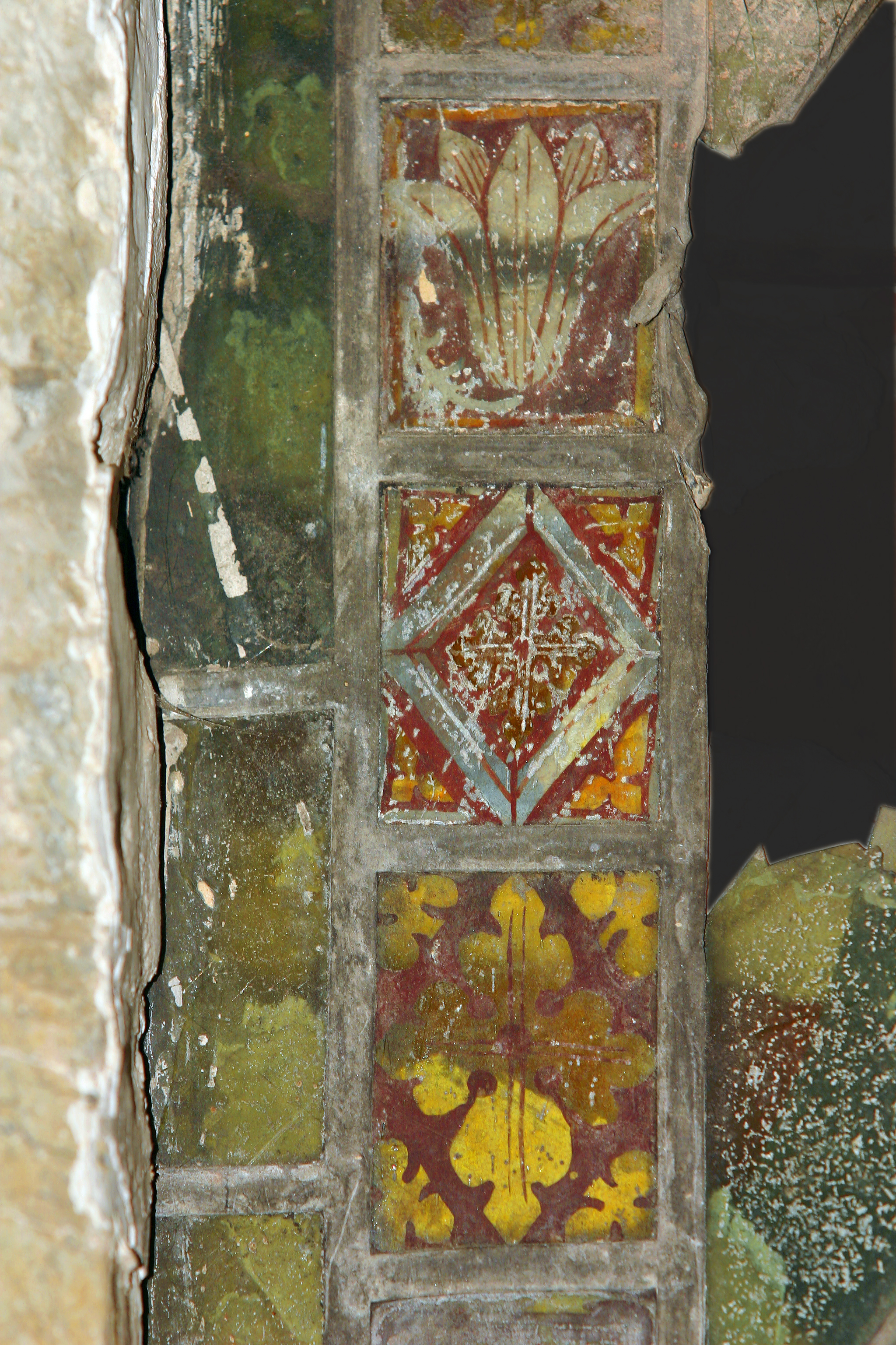 Oorspronkelijk venster in het koor met bewaard brandglas (ca. 1300)