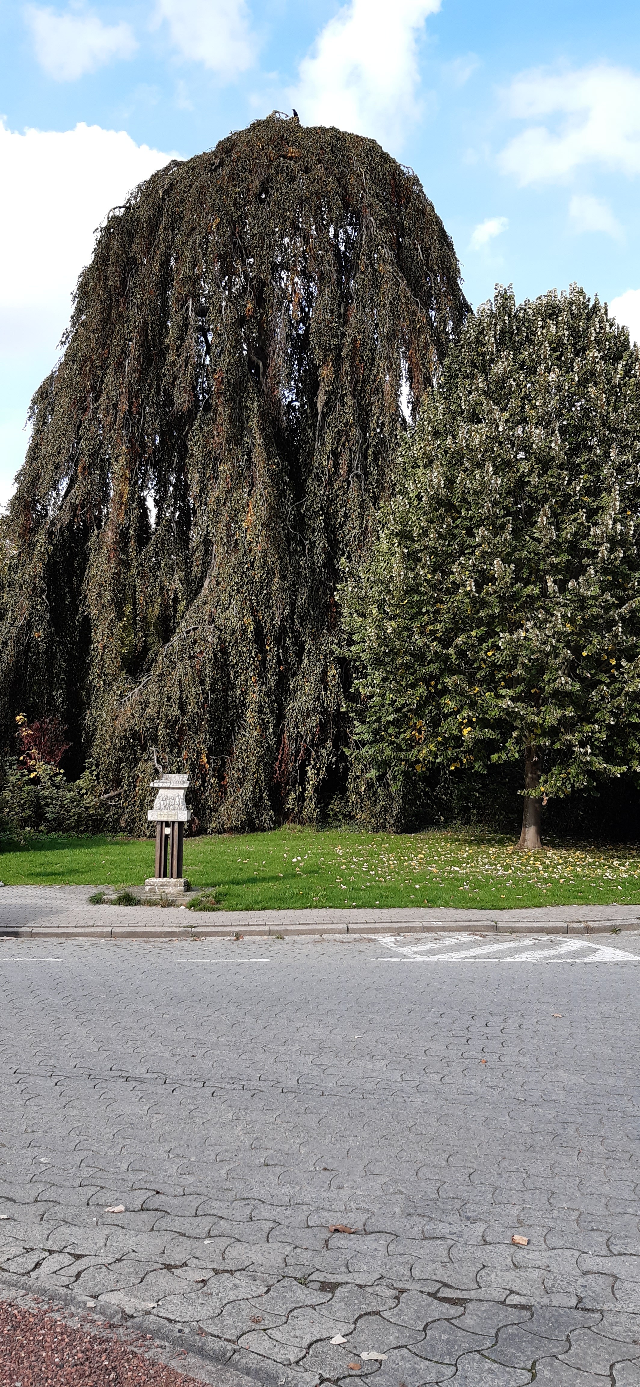 De afbeelding 'Treurbeuk bij het Sint-Alenapark' gemaakt door Kinnaer, Anse wordt ter beschikking gesteld door Agentschap Onroerend Erfgoed (AOE) onder de volgende voorwaarden: Modellicentie voor gratis hergebruik, Naamsvermelding 4.0 Internationaal.