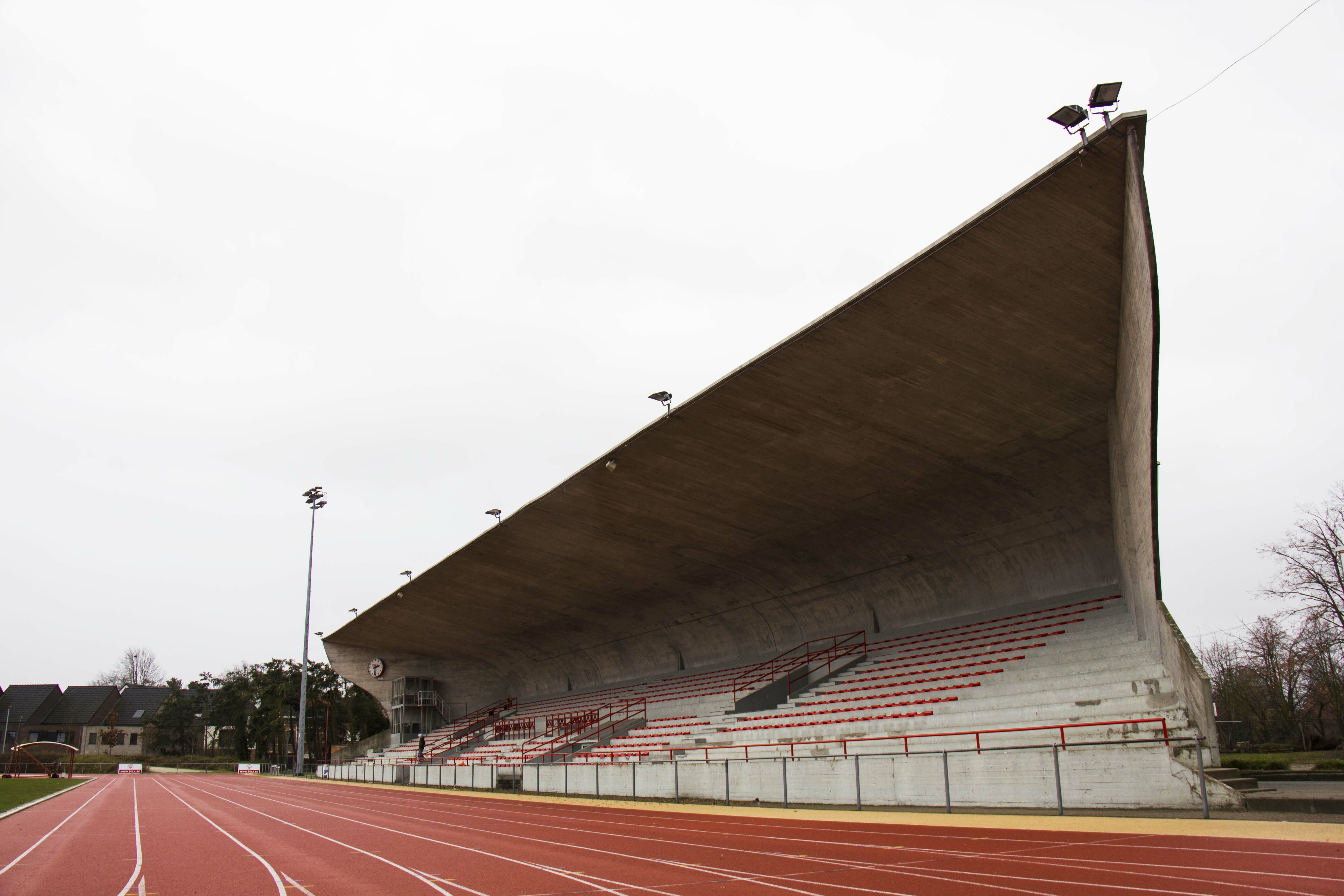 Onbekend is (niet) onbemind. Zoals ongetwijfeld meer mensen loop ik regelmatig erfgoed voorbij terwijl ik er geen idee van heb dat het erfgoed is. De voorbije 10 jaar wandelde en fietste ik vele malen achteloos voorbij en langs deze tribune. Het is de tribune van het Koning Boudewijnstadion in Kessel-Lo (Leuven) die tussen 1955 en 1959 ontworpen werd door Victor Bourgeois (1897-1962) en deel uitmaakte van een allesomvattend plan voor een sportcentrum. Victor Bourgeois was sterke voorstander van de modernistische architectuur en maakte vanaf 1927 deel uit van de internationale avant-garde-architecten. Na de Tweede Wereldoorlog werd hij aangesteld als urbanist van de gemeente. Bourgeois bleef ongeveer twintig jaar urbanist van Kessel-Lo en realiseerde in die periode naast sociale huisvesting ook veel openbare gebouwen. De tribune is het enige op zichzelf staand monumentaal gebouw dat hij creëerde in deze periode. De tribune is bovendien de enige getuige van zijn oorspronkelijke plan voor het sportcentrum dat hij uittekende. De imposante betonnen constructie met een sierlijk gebogen dak, een monumentale schil in zuiver en zichtbaar gelaten beton, kijkt uit over de atletiekpiste en de voetbalvelden van het sportcomplex. Katrien Cousserier #BeeldindeKijker - februari 2022