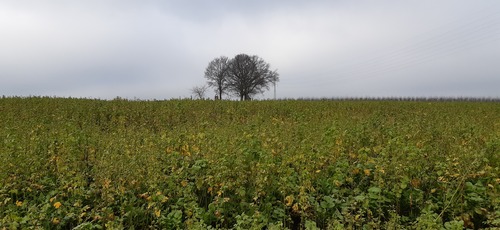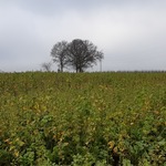 Kapel 't Eikske, omringd door bomen, bevindt zich tussen de velden, op een hooggelegen punt in het landschap