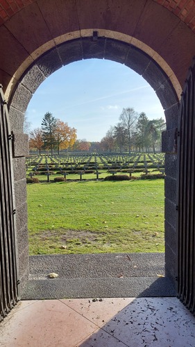 De afbeelding 'Duitse militaire begraafplaats' gemaakt door Michiels, Marijke wordt ter beschikking gesteld door Agentschap Onroerend Erfgoed (AOE) onder de volgende voorwaarden: Modellicentie voor gratis hergebruik, Naamsvermelding 4.0 Internationaal.