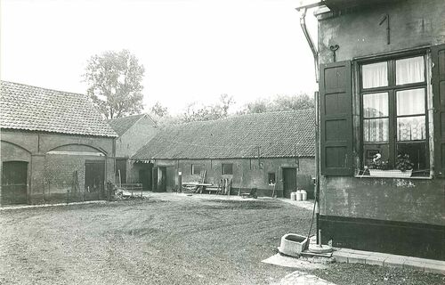 Het erf met hof, schuur en links het in 1997 gesloopte wagenhuis.