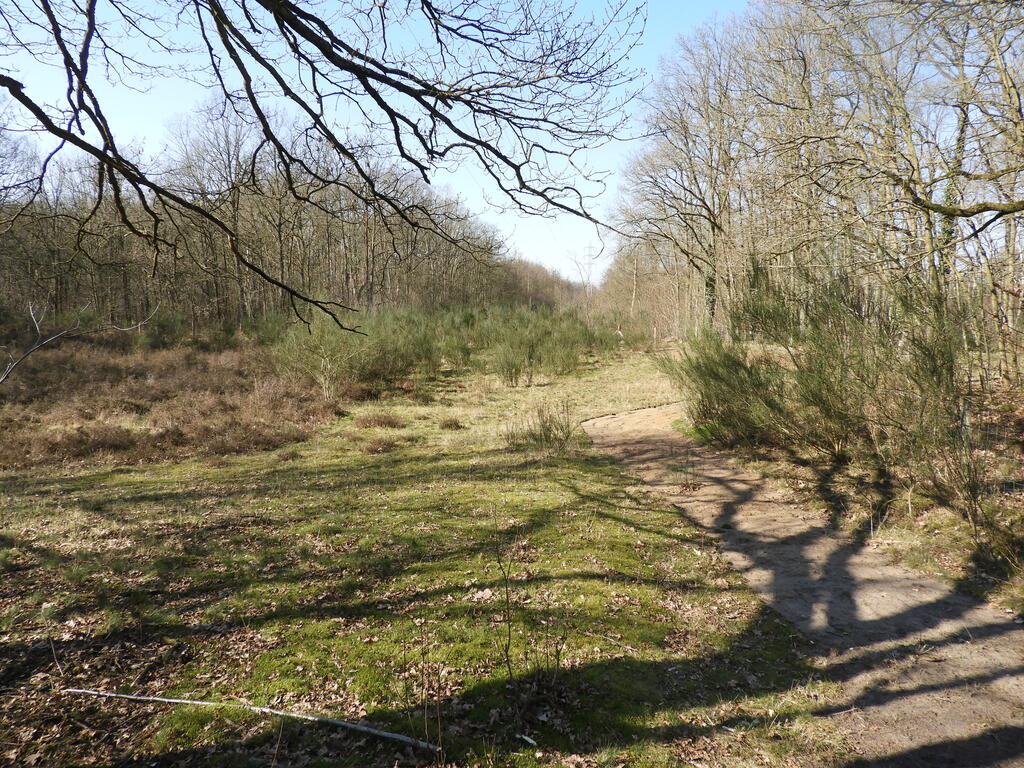 Ontwikkeling van heidevegetatie op een begraasde strook onder een hoogspaningslijn.