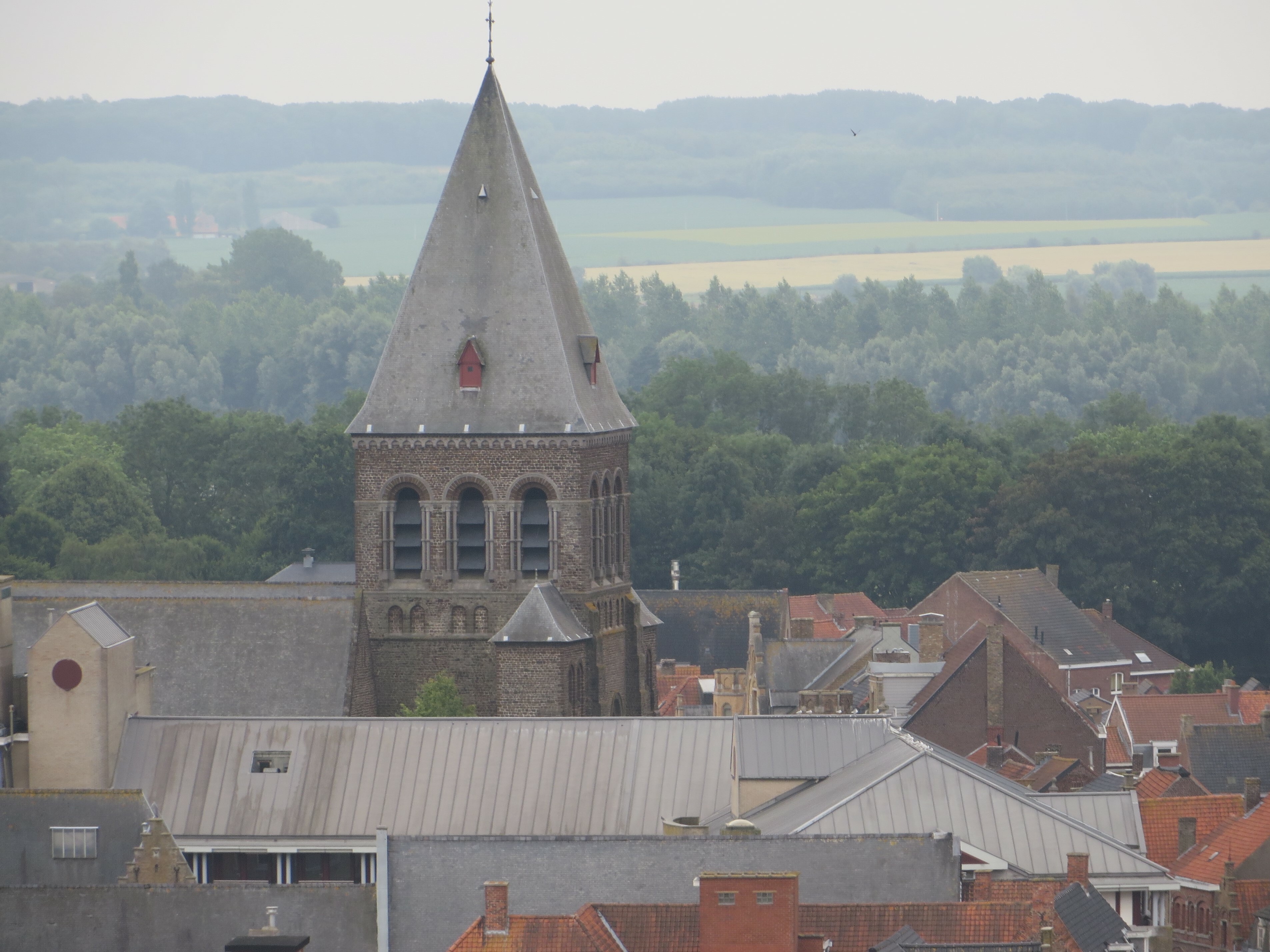 De afbeelding 'Ieper Rijselstraat Sint-Pieterskerk vanaf belfort ' gemaakt door Vanneste, Pol wordt ter beschikking gesteld door Agentschap Onroerend Erfgoed (AOE) onder de volgende voorwaarden: Modellicentie voor gratis hergebruik, Naamsvermelding 4.0 Internationaal.