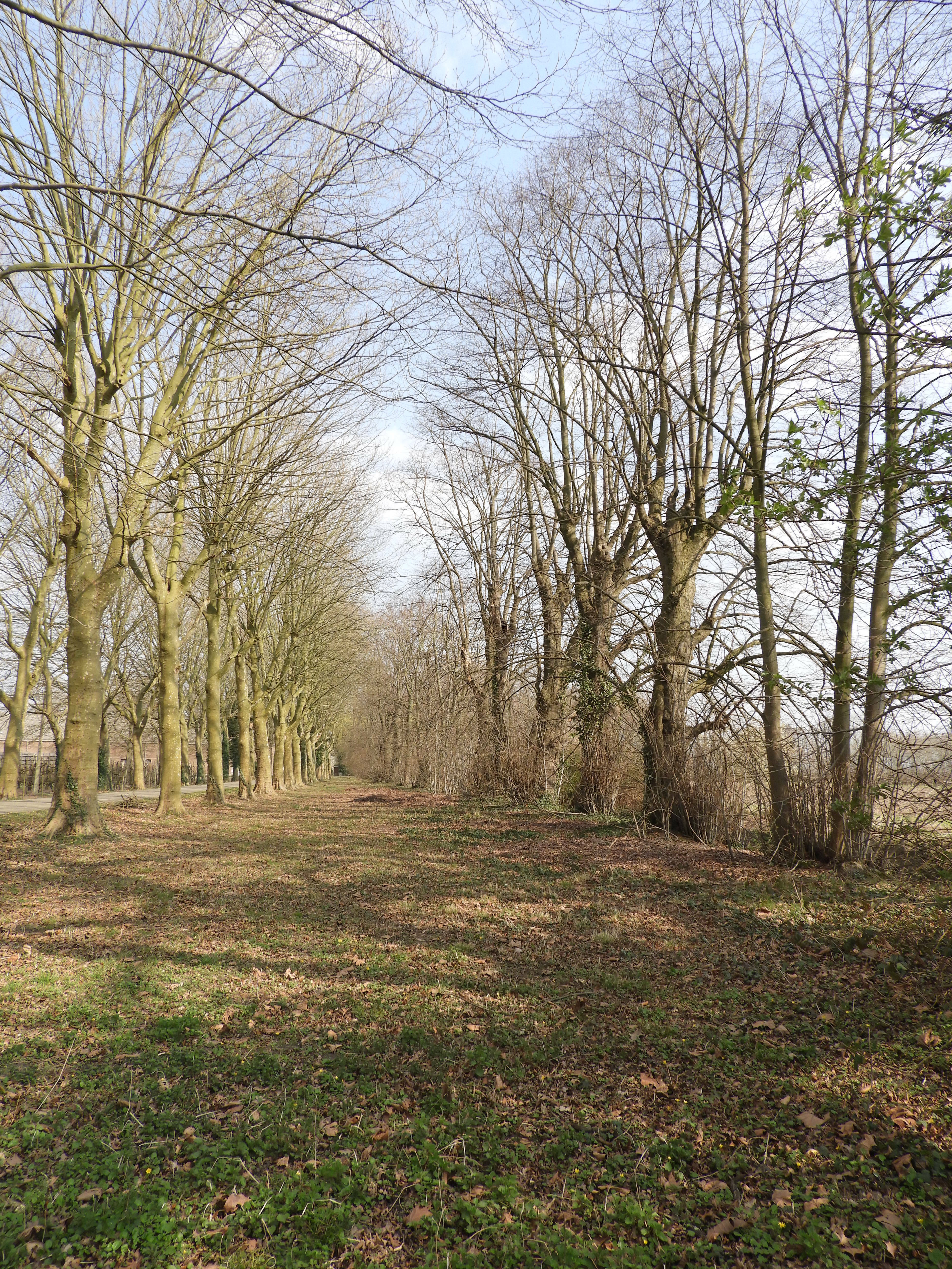 Flankerende bomenrij van lindes (rechts) parallel aan de dreef met platanen van de abdij van Hocht.