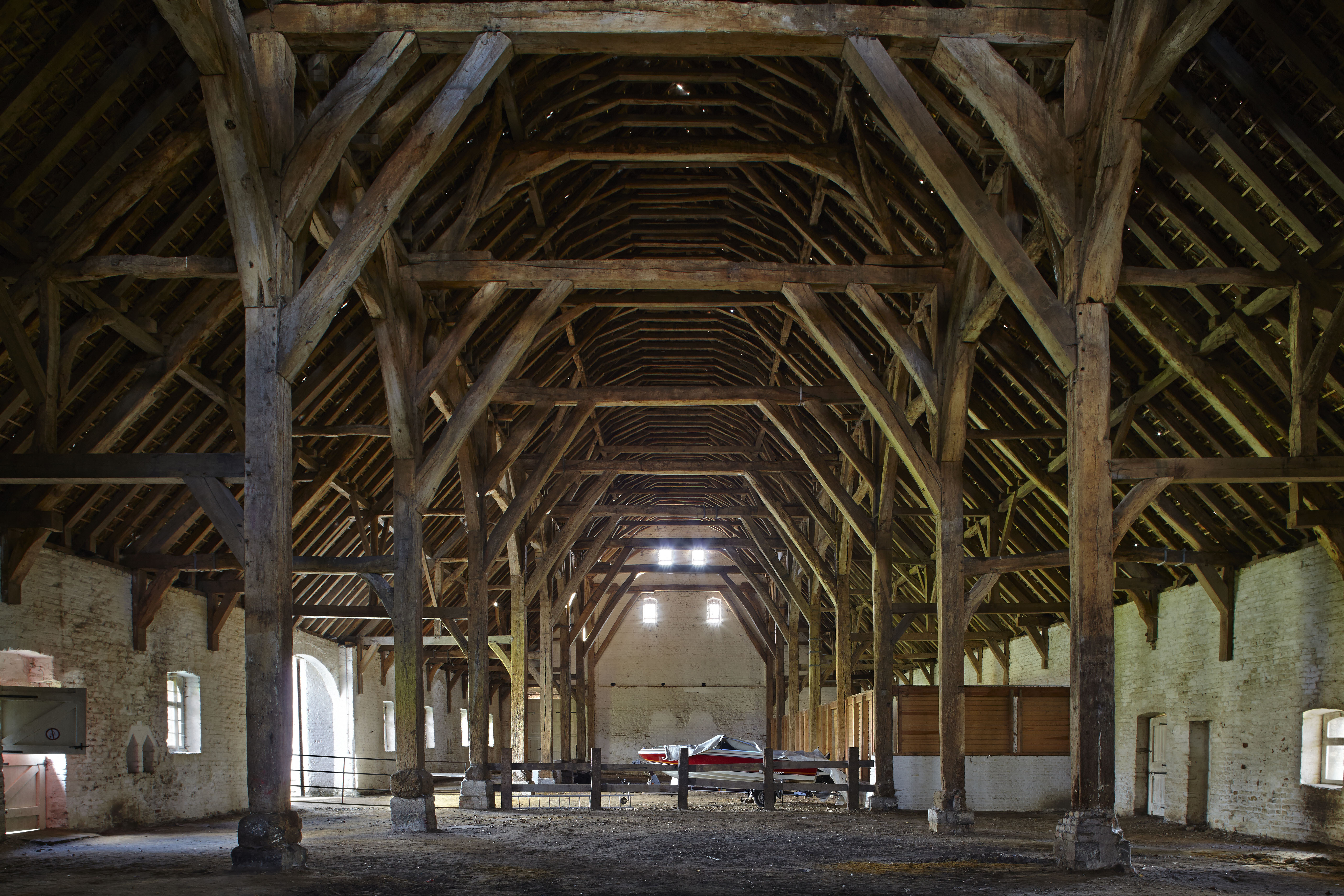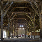 Zicht op de monumentale kap van de abdijschuur van Ter Doest.