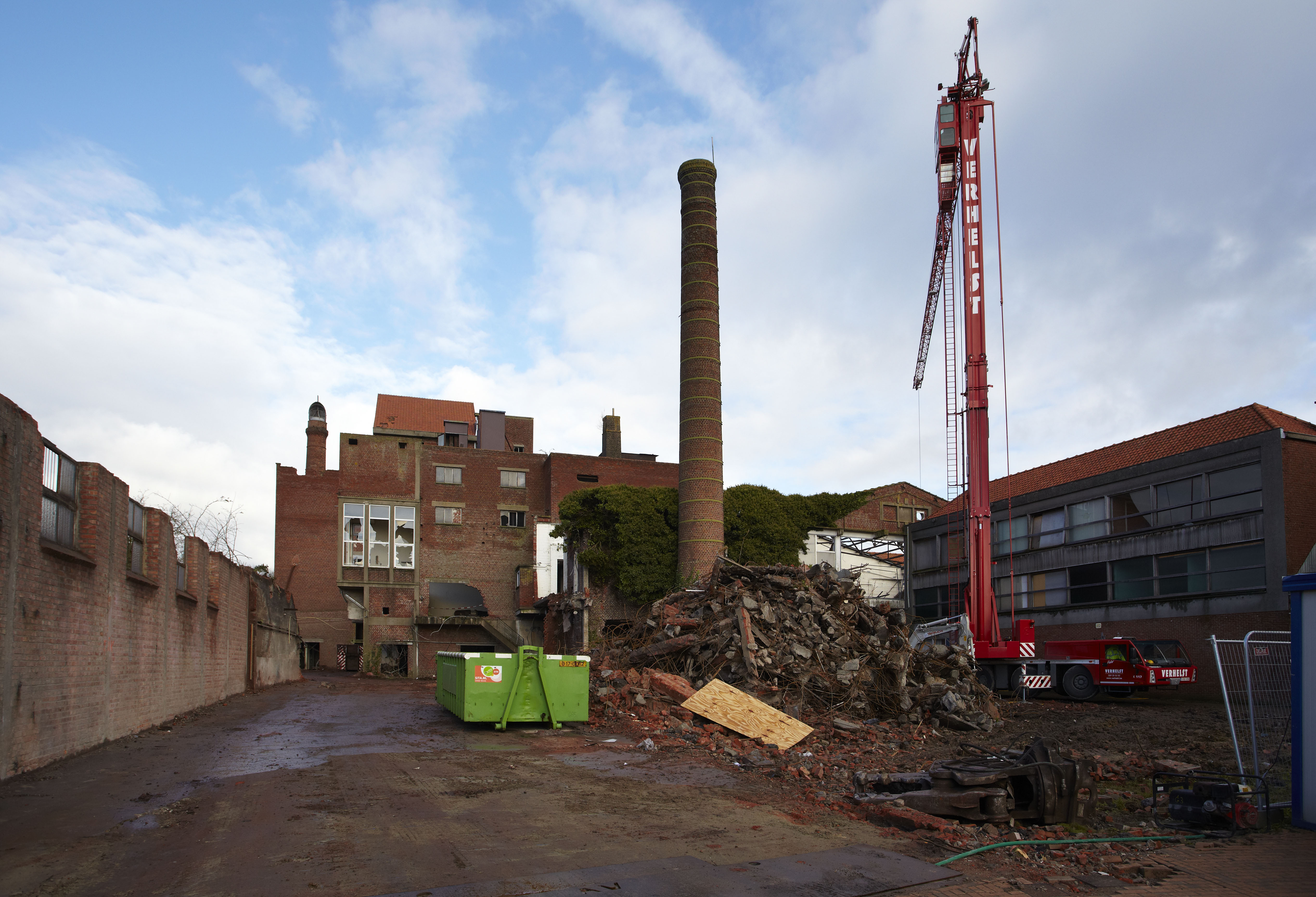 De afbeelding 'Mouttoren en fabrieksschoorstenen brouwerij Den Arend' gemaakt door Vandevorst, Kris wordt ter beschikking gesteld door Agentschap Onroerend Erfgoed (AOE) onder de volgende voorwaarden: Modellicentie voor gratis hergebruik, Naamsvermelding 4.0 Internationaal.