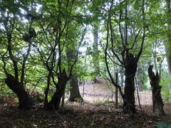 Relicten van een oude kaphaag of knotbomenrij langs de oude grens van het parkje