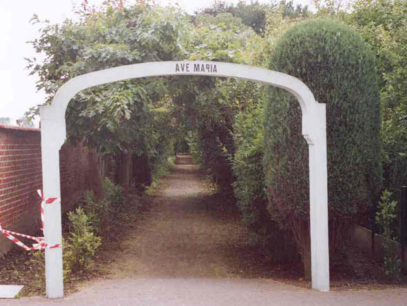 Govaertskapel Betonnen witgeschilderde boog met opschrift "AVE MARIA"