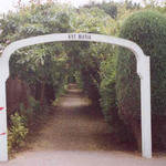 Govaertskapel Betonnen witgeschilderde boog met opschrift "AVE MARIA"