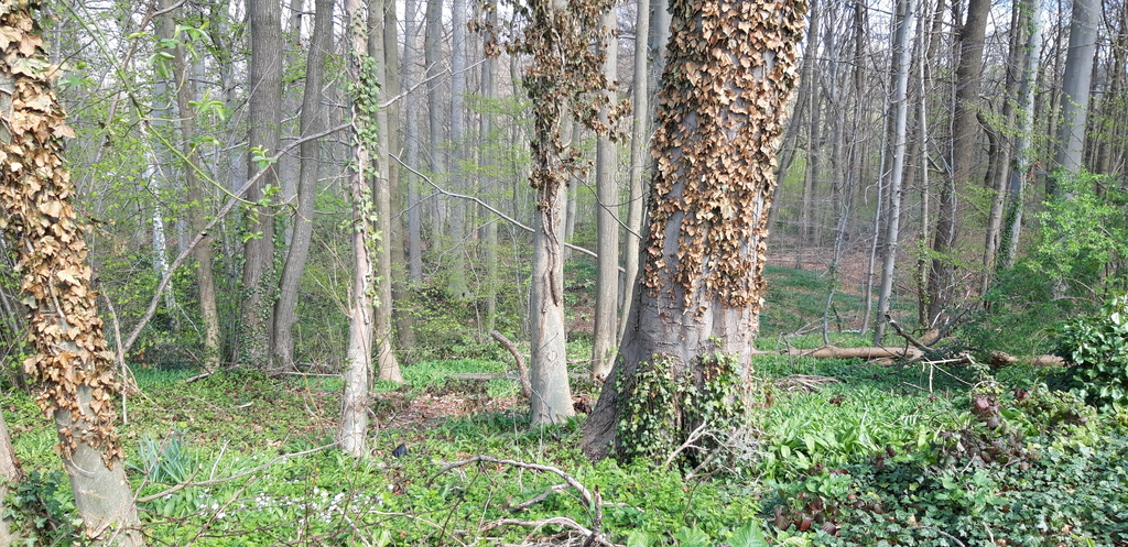 Een reliëfrijk beukenbos met voorjaarsbloeiers, hier met daslook #voorjaarsbloeiers
