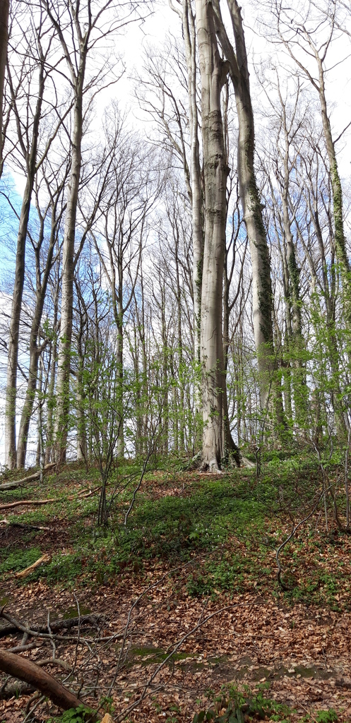 Een reliëfrijk beukenbos met voorjaarsbloeiers, zoals daslook, boshyacint en bosanemoon #voorjaarsbloeiers