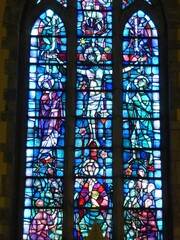 Petegem-aan-de-Schelde parochiekerk Sint-Martinus: glasraam van 1953 in koor