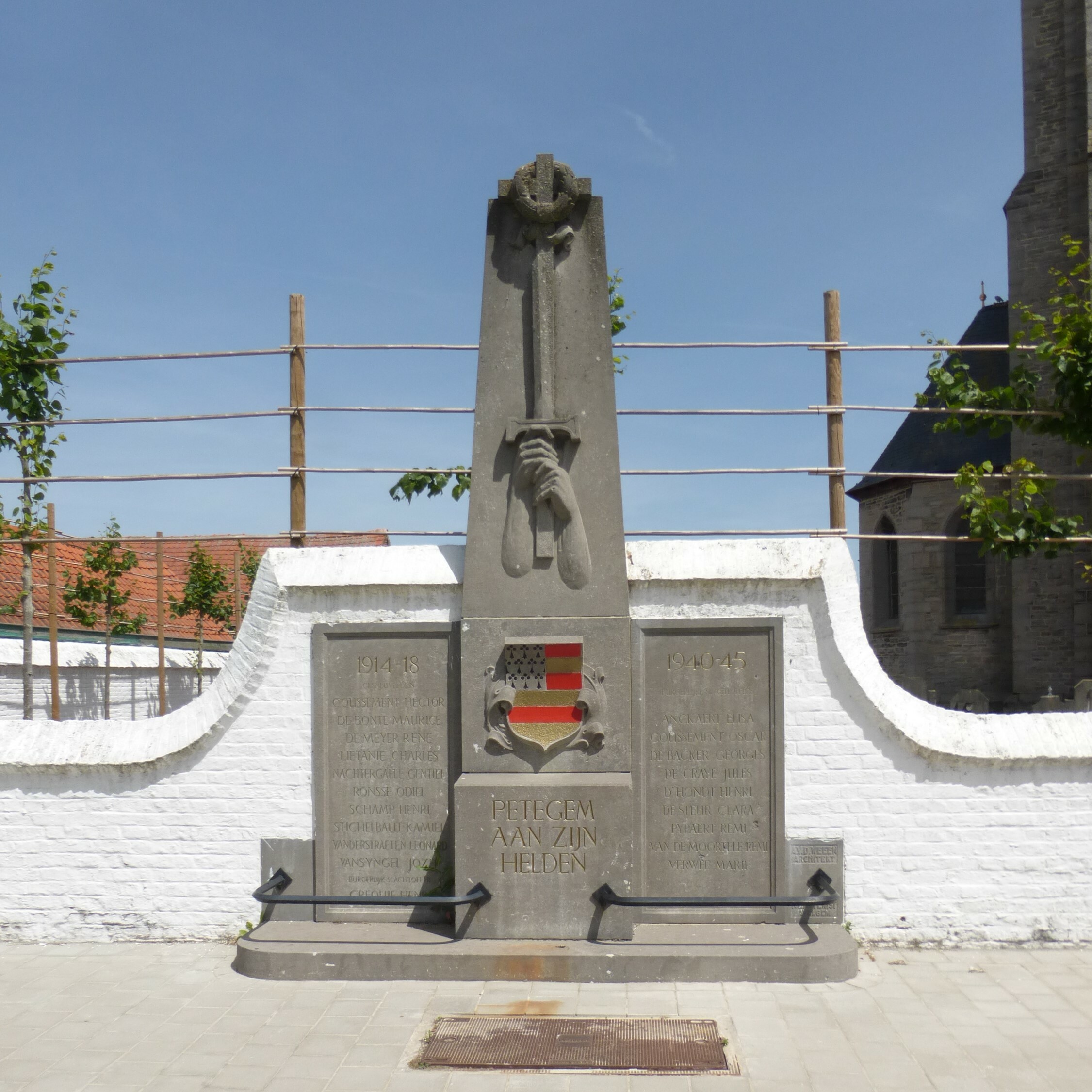 De afbeelding 'Petegem-aan-de-Schelde Sint-Martinuskerk kerkhofmuur met oorlogsgedenkteken' gemaakt door Vanneste, Pol wordt ter beschikking gesteld door Anoniem onder de volgende voorwaarden: Modellicentie voor gratis hergebruik, Naamsvermelding 4.0 Internationaal.