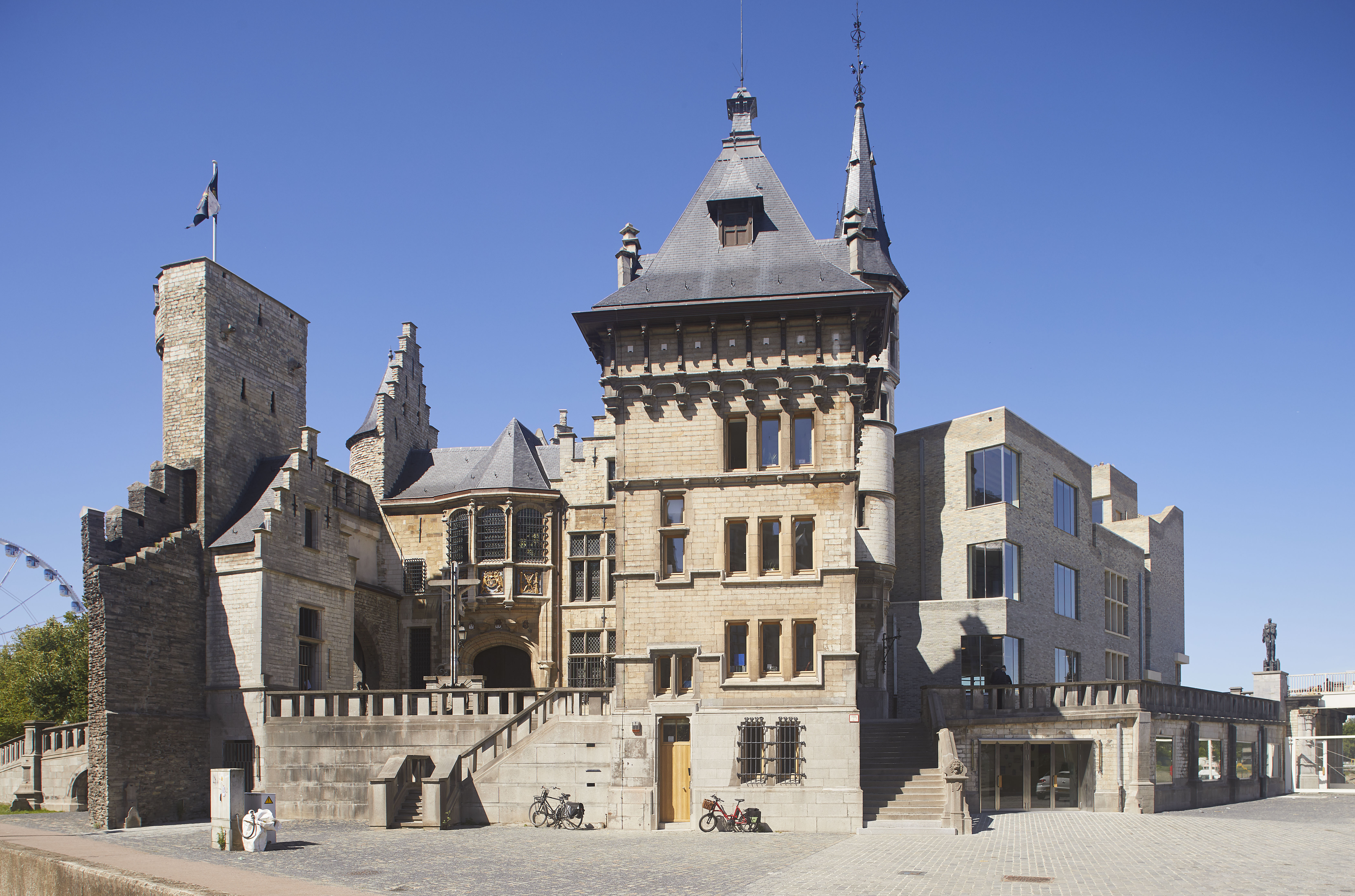 Het Steen na de restauratie van 2021, met aanpalende nieuwbouw. Foto genomen voor de uitreiking van de Onroerenderfgoedprijs 2022. Het Steen in Antwerpen is de winnaar van deze editie.