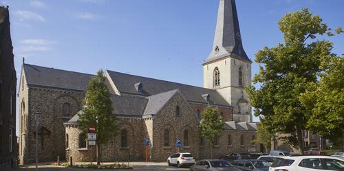 De Sint-Odulphuskerk na de restauratie van 2021. Foto genomen voor de uitreiking van de Onroerenderfgoedprijs 2022. De Sint-Odulphuskerk in Borgloon is de winnaar van de publieksprijs van deze editie.