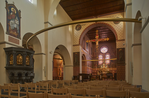 De Sint-Odulphuskerk na de restauratie van 2021. Foto genomen voor de uitreiking van de Onroerenderfgoedprijs 2022. De Sint-Odulphuskerk in Borgloon is de winnaar van de publieksprijs van deze editie.