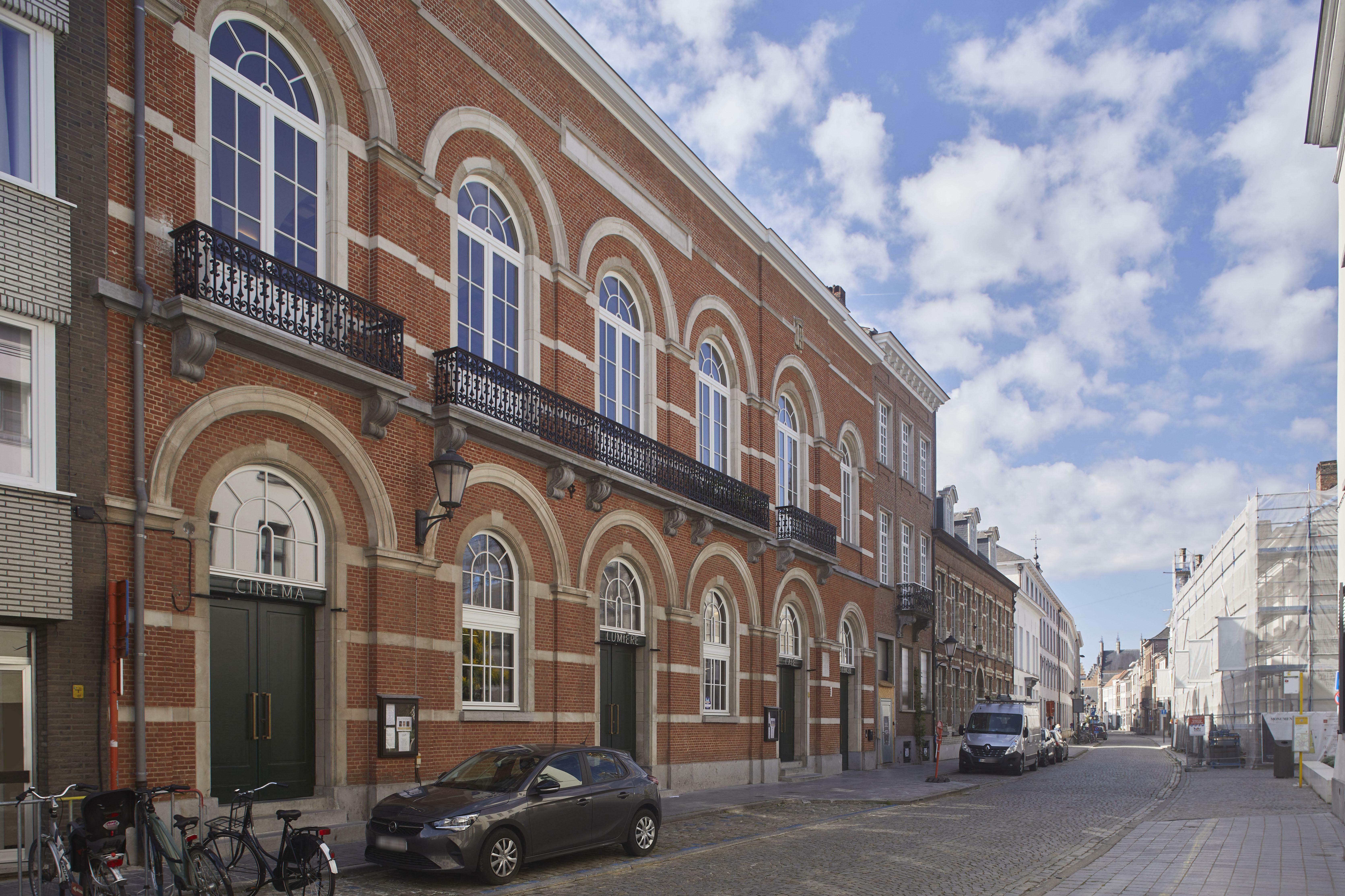 Stadsfeestzaal die sinds de restauratie in 2021 uitgebaat wordt als bioscoopzaal. Foto genomen voor de uitreiking van de Onroerenderfgoedprijs 2022. De Oude Stadsfeestzaal in Mechelen is een verdiende laureaat van deze editie.