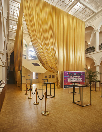 Stadsfeestzaal die sinds de restauratie in 2021 uitgebaat wordt als bioscoopzaal. Foto genomen voor de uitreiking van de Onroerenderfgoedprijs 2022. De Oude Stadsfeestzaal in Mechelen is een verdiende laureaat van deze editie.