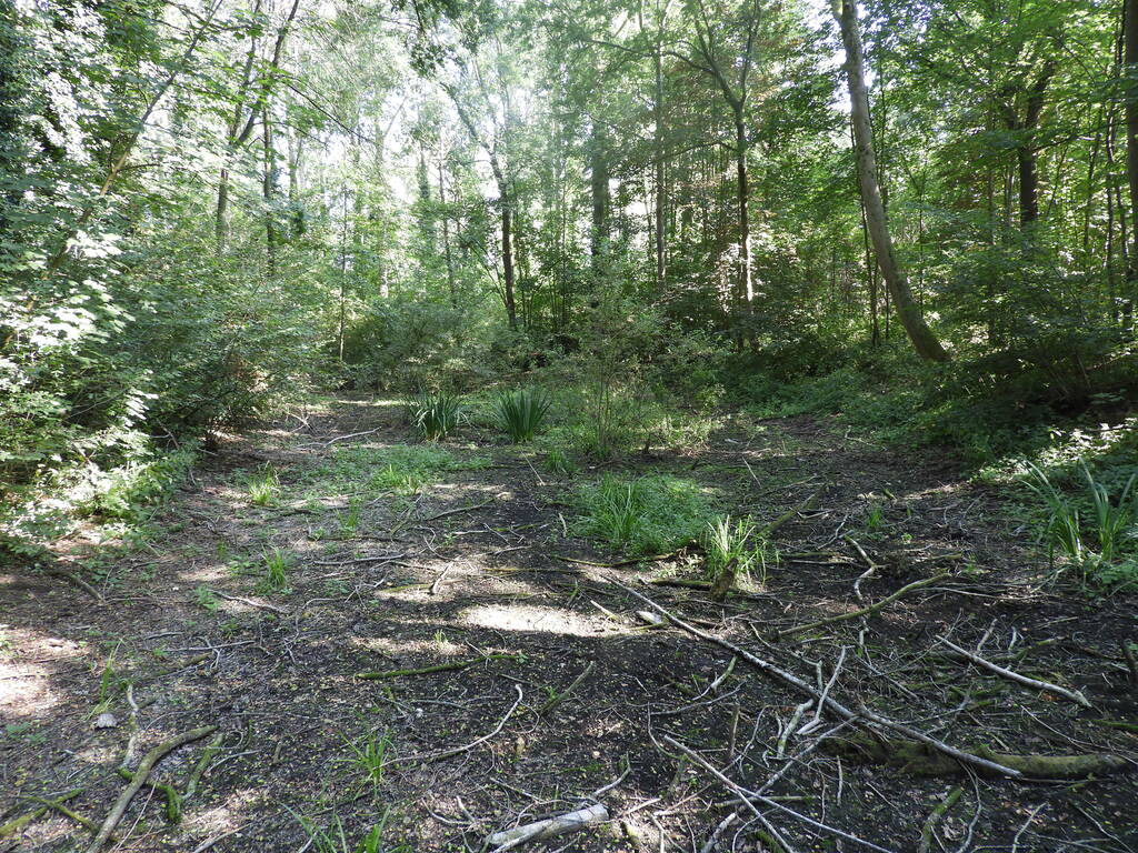 Verdroogde vestinggracht tijdens de hete zomer 2022