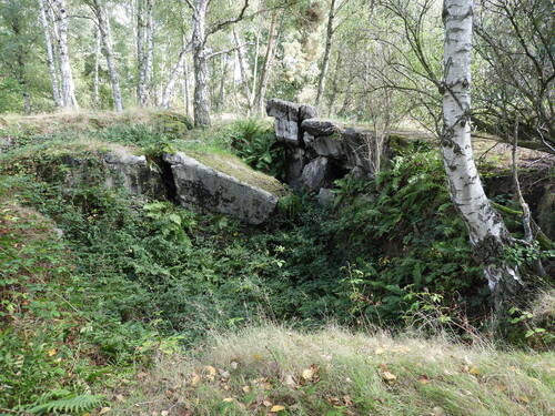 Opgeblazen betonnen geschutkoepel op het hoofdfrontgebouw