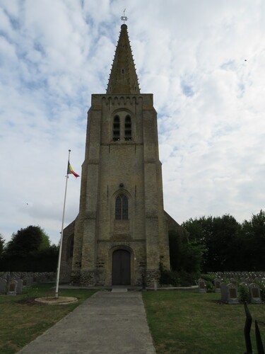 De afbeelding 'Alveringem Oeren Oerenstraat parochiekerk Sint-Apollonia met omringende militaire begraafplaats' gemaakt door Becuwe, Frank wordt ter beschikking gesteld door Agentschap Onroerend Erfgoed (AOE) onder de volgende voorwaarden: Modellicentie voor gratis hergebruik, Naamsvermelding 4.0 Internationaal.
