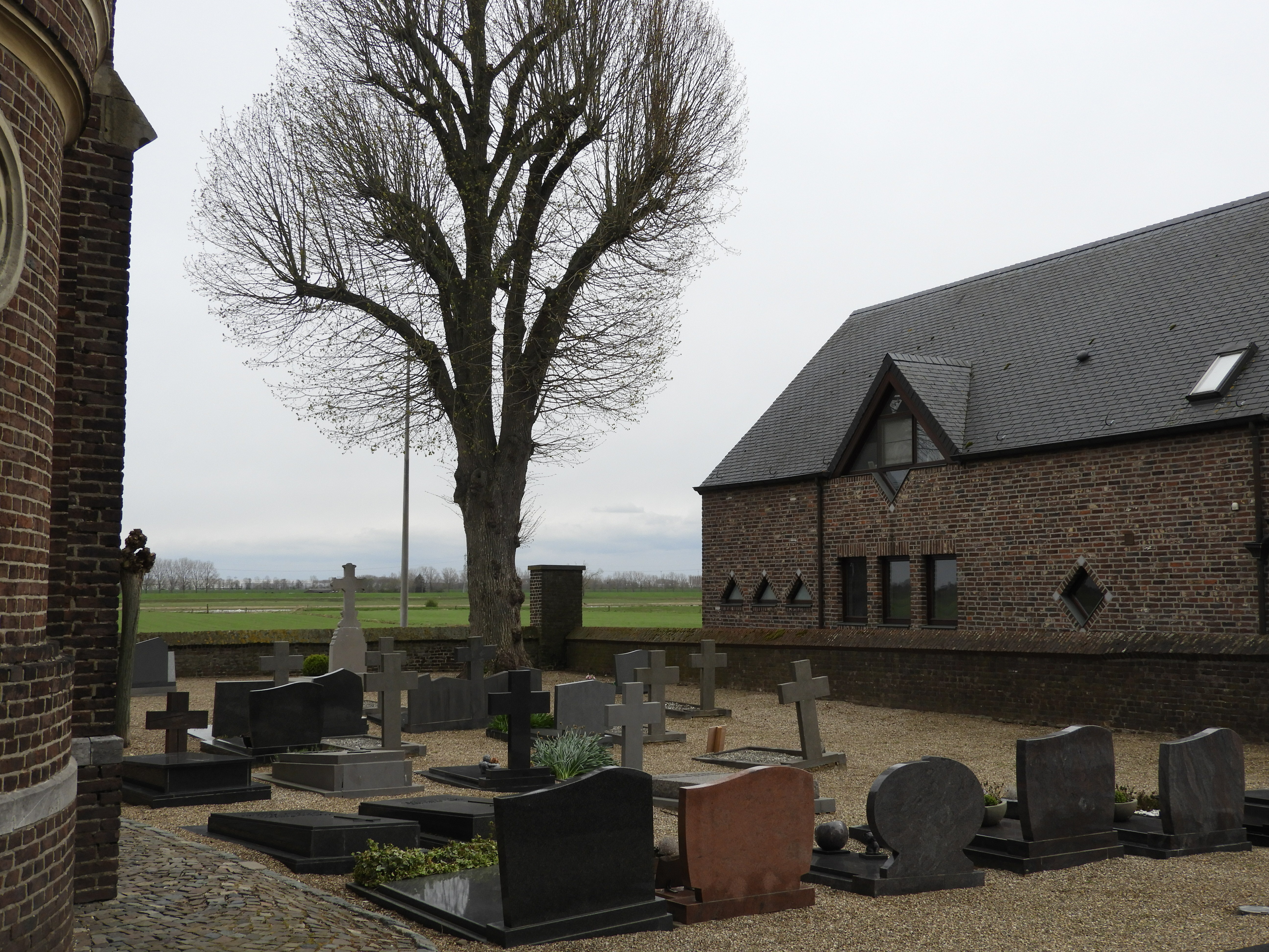 Maaseik Heppeneert Parochiekerk Sint-Gertrudis, omgeven door kerkhof
