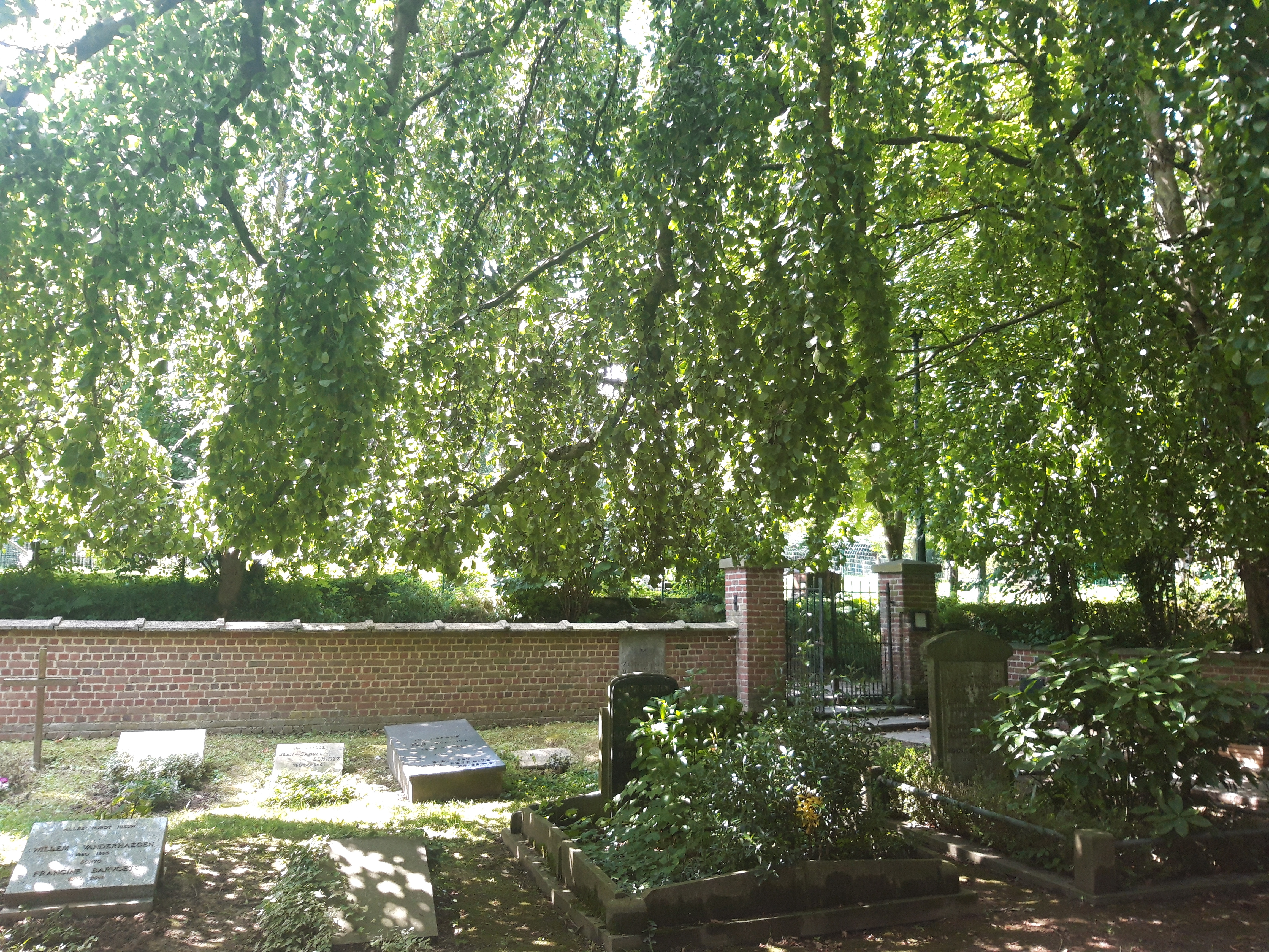 De kroon beschaduwt de graven op het kerkhof.