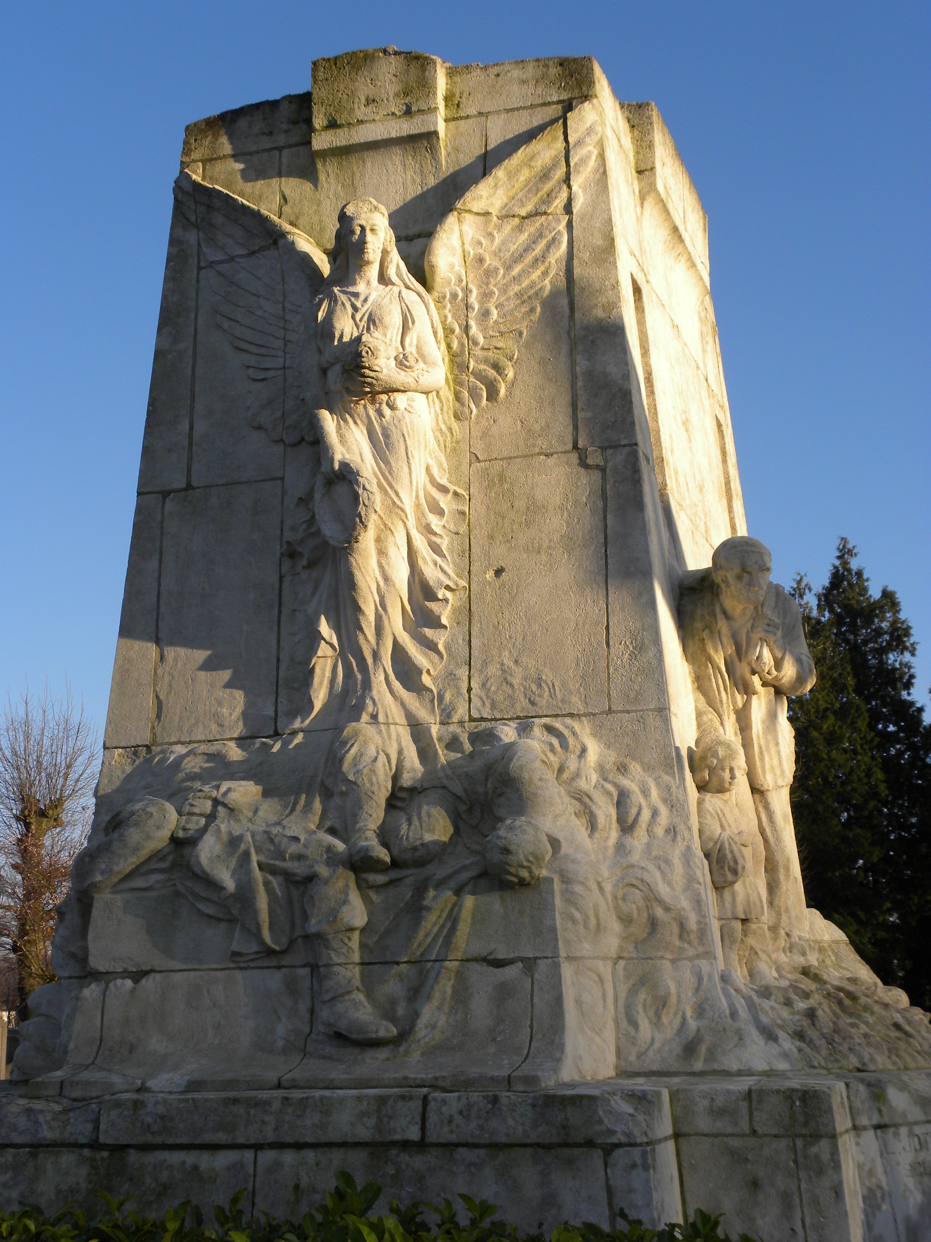 De afbeelding 'Oorlogsgedenkteken op stedelijke begraafplaats' gemaakt door Verboven, Hilde wordt ter beschikking gesteld door Agentschap Onroerend Erfgoed (AOE) onder de volgende voorwaarden: Modellicentie voor gratis hergebruik, Naamsvermelding 4.0 Internationaal.