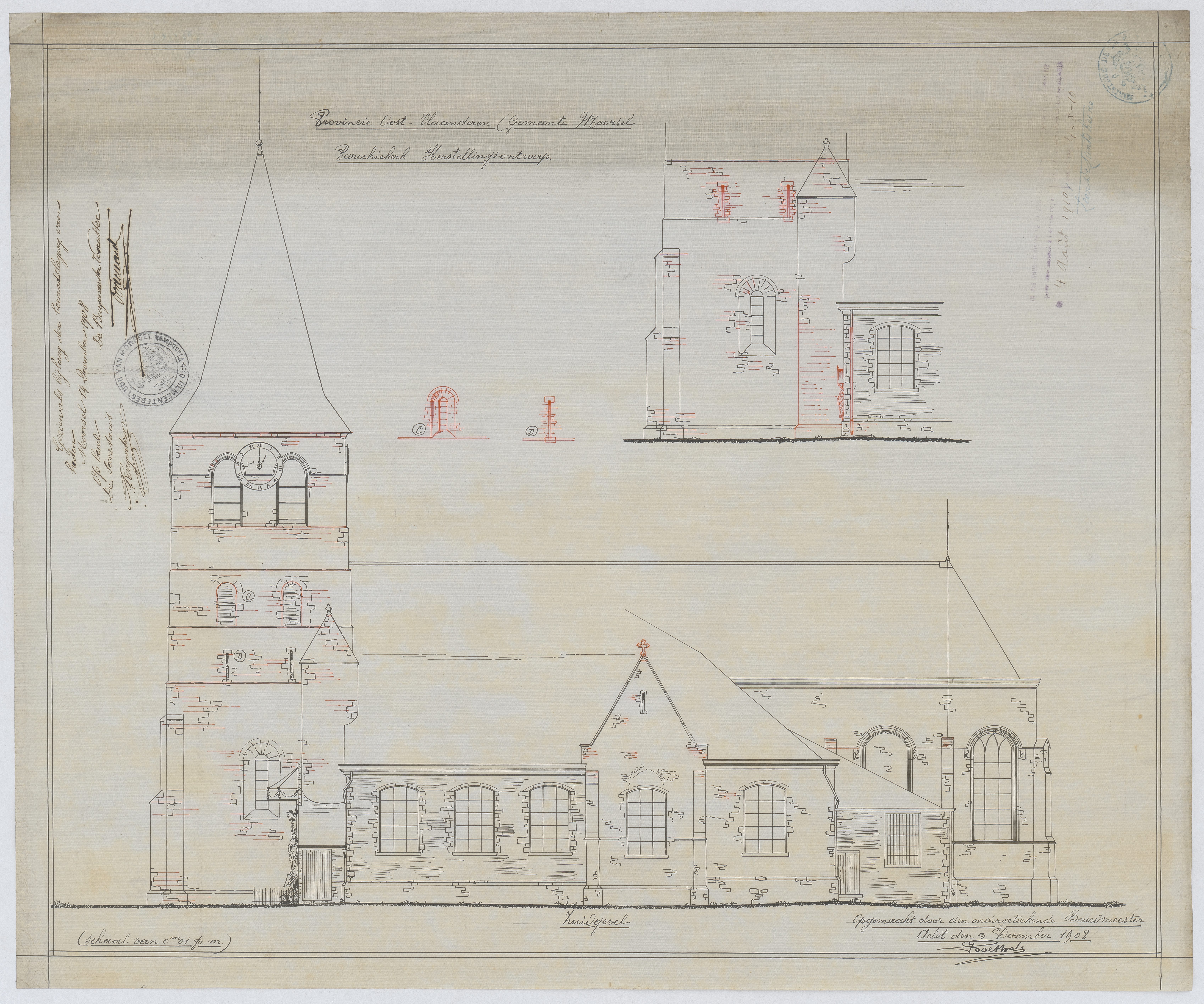 Opschrift: Parochiekerk. Herstellingsontwerp. Omschrijving plan: opstand Z-gevel Datum KCML: deze informatie wordt niet vermeld op het archiefstuk Archiefnummer: O0080