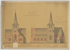Opschrift: Provincie Oost-Vlaanderen. Gemeente Meldert. Ontwerp tot vergrooting en herstelling der parochiekerk. Omschrijving plan: opstand voorgevel, opstand zuidelijke zijgevel Datum KCML: 15/06/1889 Archiefnummer: O0073_02
