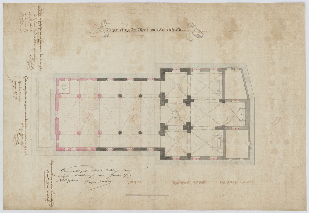 Opschrift: Vergrooting der Kerk van Lootenhulle Omschrijving plan: plattegrond niveau 0 Datum KCML: deze informatie wordt niet vermeld op het archiefstuk Archiefnummer: O0109