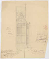 Opschrift: Projet de confessionnal pour l'église de Overmeire Omschrijving plan: zijaanzicht Datum KCML: 28/12/1895 Archiefnummer: O0154