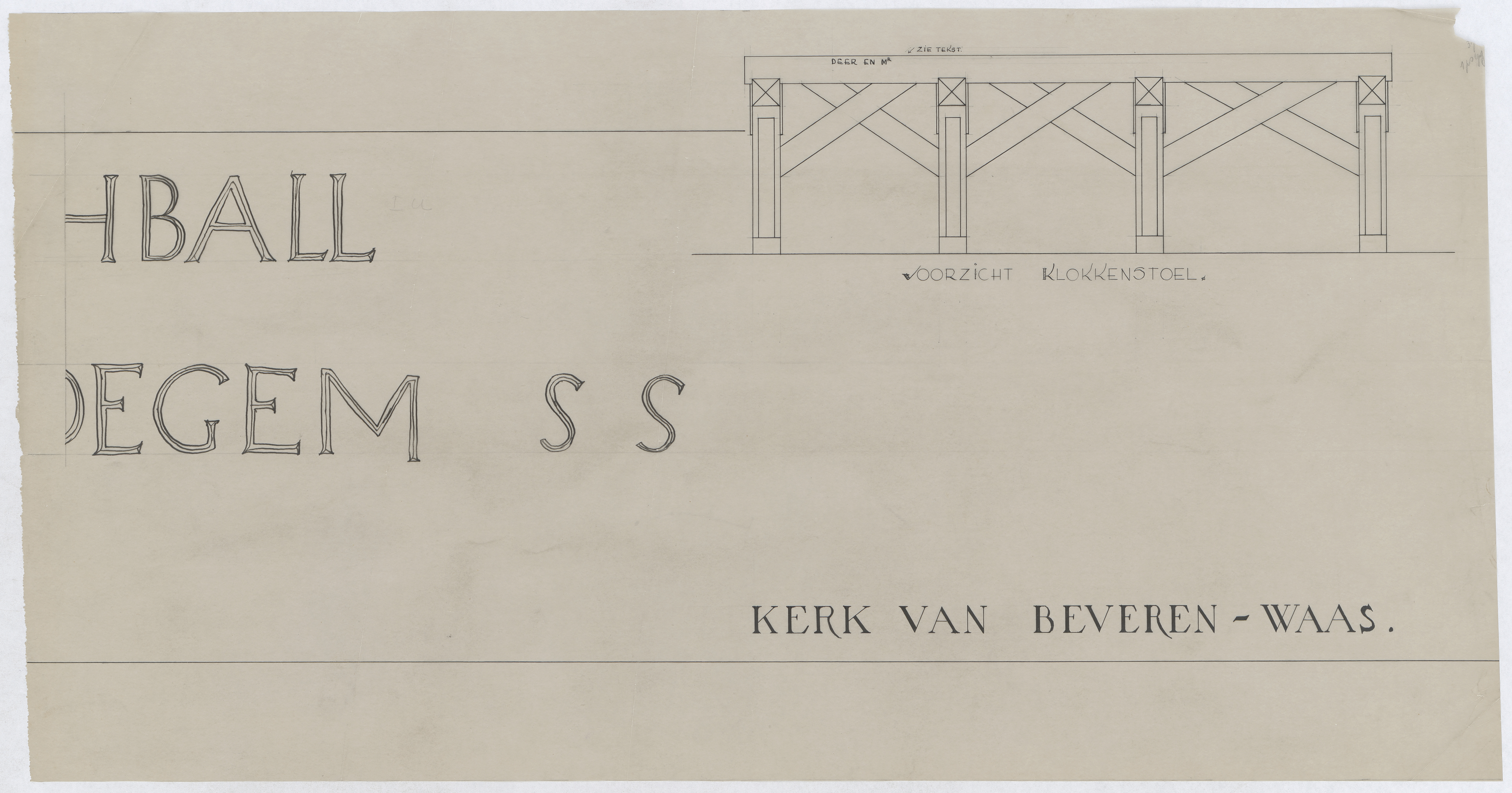 Opschrift: Kerk van Beveren-Waas Omschrijving plan: opschrift op de klokkenstoel (deel 4 van 4) Datum KCML: deze informatie wordt niet vermeld op het archiefstuk Archiefnummer: O0184_d