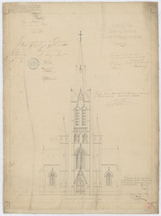 Opschrift: Land van Waes. Gemeente Haesdonck. Plan der voltrekking van de kerk. Omschrijving plan: opstand voorgevel Datum KCML: deze informatie wordt niet vermeld op het archiefstuk Archiefnummer: O0187