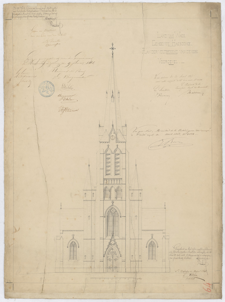 Opschrift: Land van Waes. Gemeente Haesdonck. Plan der voltrekking van de kerk. Omschrijving plan: opstand voorgevel Datum KCML: deze informatie wordt niet vermeld op het archiefstuk Archiefnummer: O0187