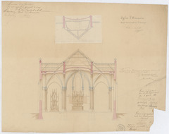 Opschrift: Eglise d'Overmeire. Coupe transversale sur le transept. Omschrijving plan: dwarsdoorsnede, dwarsdoorsnede op het transept Datum KCML: 27/06/1863 Archiefnummer: O0151_02