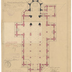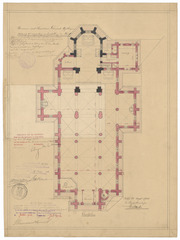 Opschrift: Provincie Oost-Vlaanderen, Gemeente Uijtbergen. Ontwerp tot vergrooting en herstelling der kerk. Omschrijving plan: plattegrond niveau 0 (aangepast ontwerp) Datum KCML: 27/05/1905 Archiefnummer: O0155_01
