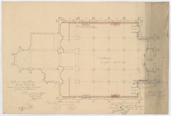 Opschrift: Provincie Oost-Vlaanderen. Gemeente Beveren-Waes. Ontwerp van een houten beschot en biechtstoelen te plaatsen in de parochiekerk. Omschrijving plan: plattegrond niveau 0 Datum KCML: 30/09/1899 Archiefnummer: O0170