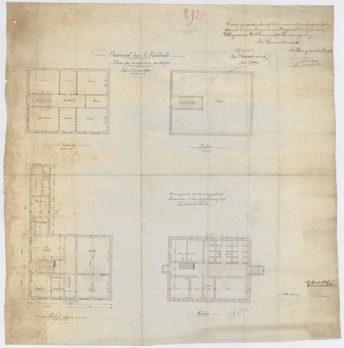 Opschrift: Pastoreel huis te Kieldrecht. Plans der verscheidene verdiepen. Omschrijving plan: plattegrond -1, 0, 1 en 2 Datum KCML: 13/04/1895 Archiefnummer: O0205
