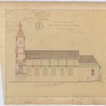 Opschrift: Province de la Flandre Orientale. Eglise Paroissiale de St.Amand à Opdorp. Projet d'agrandissement. Omschrijving plan: langsdoorsnede Datum KCML: 05/02/1881 Archiefnummer: O0243