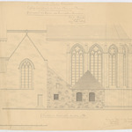Opschrift: Province de Flandre Orientale. Eglise paroissiale de N.Dame à Deinze. Etat actuel du choeur, des transepts & sacristies. Omschrijving plan: opstand Z-gevel Datum KCML: deze informatie wordt niet vermeld op het archiefstuk Archiefnummer: O0272